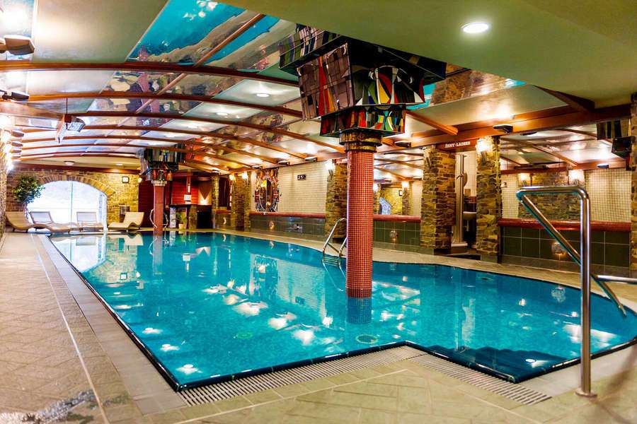 - Kryty basen z podgrzewaną wodą (12,8 × 5 m)