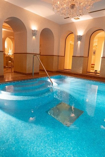 - Kryty basen z kryształowym żyrandolem
