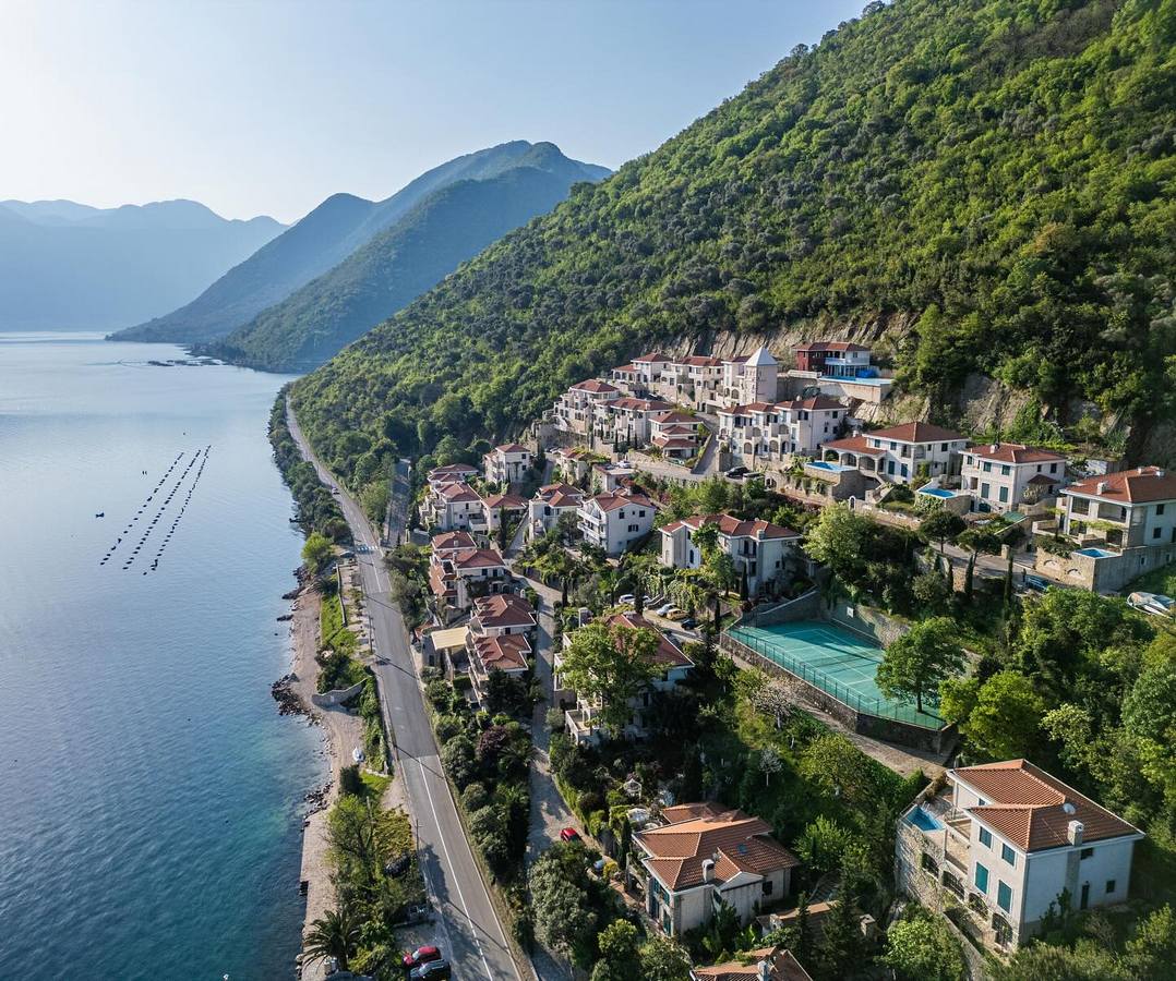 Ośrodek położony jest w wiosce rybackiej Kostanjica, w sercu Zatoki Kotorskiej (Boka Kotorska). Kompleks otoczony jest górami i klifami, które schodzą w kierunku czystego, błękitnego morza. Ośrodek oferuje przestronne apartamenty z ogrodami, z widokiem na zatokę, a także takie atrakcje jak stare miasto Perast, sztuczna wyspa Matki Boskiej na Skale i wyspa św. Jerzego, na której znajduje się klasztor benedyktynów z XII wieku. Kompleks oferuje gościom śródziemnomorską restaurację, prywatne molo, plażę, basen, strefę wellness, wypożyczalnię rowerów i kort tenisowy.