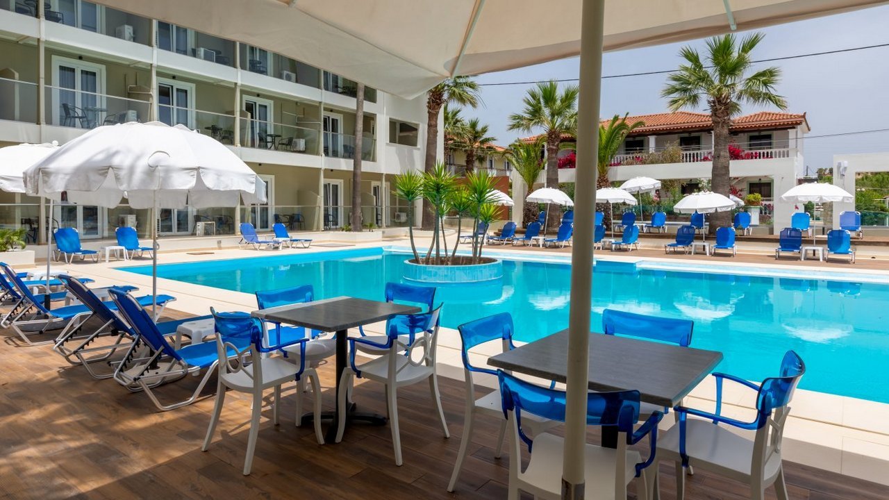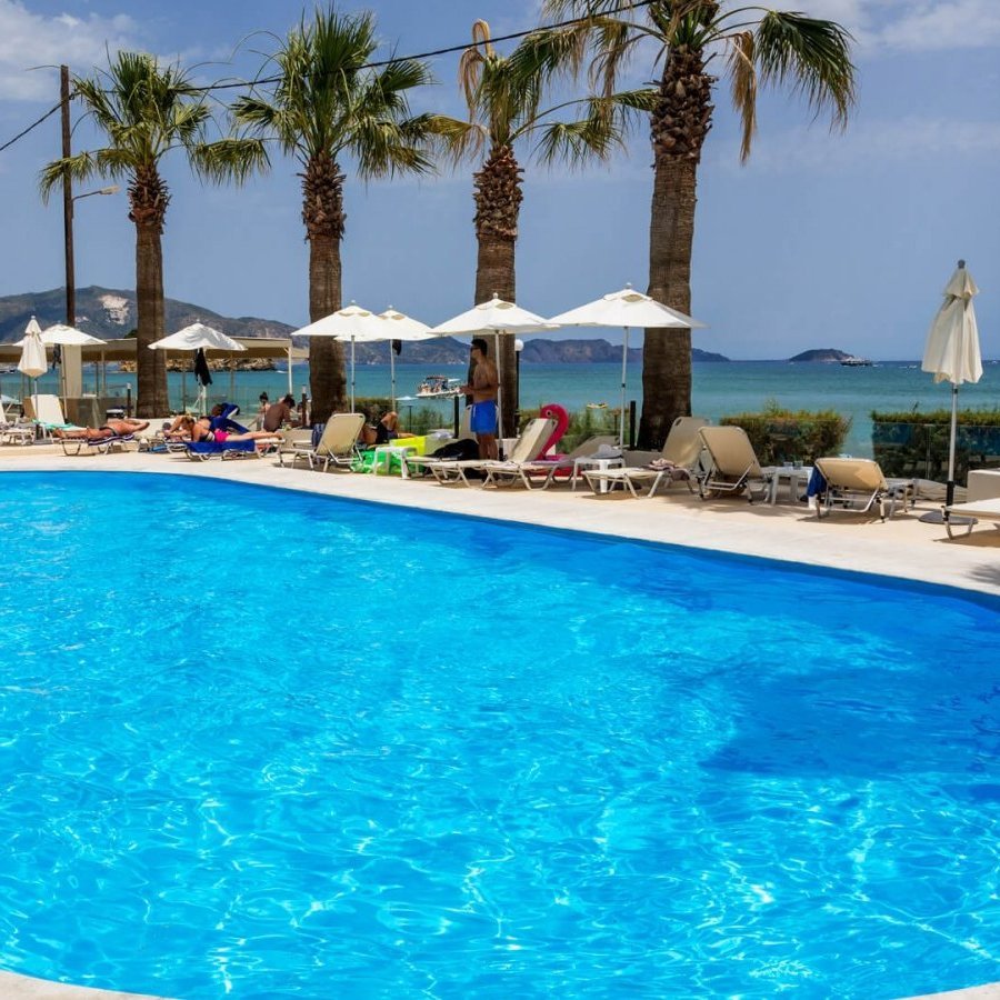 Kompleks położony jest w kurorcie Agios Sostis – bardzo popularnym i kosmopolitycznym centrum wyspy Zakynthos, położonej 9 km na północ od stolicy (Zakynthos). Hotel oferuje niesamowity widok na Morze Jońskie w połączeniu z wyjątkową wyspą Marathonisi. Piękny widok roztacza się także z hotelowej restauracji, która została zaprojektowana jako ogród na dachu. W pobliżu kurortu znajduje się wąska piaszczysta plaża otoczona białym piaskiem i krystalicznie czystą wodą. Baseny hotelowe są starannie rozmieszczone w okolicy, dzięki czemu są bardzo przestronne i wygodne.