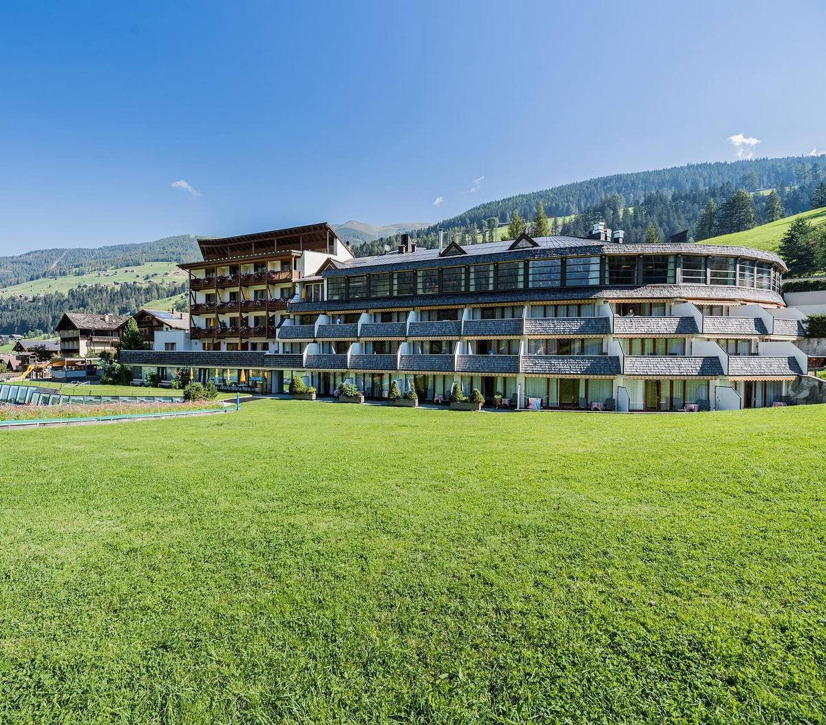 Ośrodek położony jest w Moso – małej wiosce o bogatej historii, otoczonej majestatycznymi szczytami Dolomitów Seksten. Okolica cieszy się popularnością wśród narciarzy i rowerzystów, a najbliższa kolejka linowa, łącząca ośrodek narciarski Croda Rossa, znajduje się zaledwie kilkadziesiąt metrów od ośrodka. Oprócz samego hotelu, w obiekcie znajdują się również oddzielne apartamenty. Z usług ośrodka może korzystać każdy (niezależnie od wybranego rodzaju zakwaterowania). Do dyspozycji gości jest restauracja, bar, piłkarzyki, bilard, przechowalnia sprzętu narciarskiego, kursy narciarskie dla najmłodszych, animacje, miniklub dla dzieci (powierzchnia kryta 800 m², powierzchnia zewnętrzna 2000 m²), a przede wszystkim dwupiętrowe spa z basenem i atrakcjami.