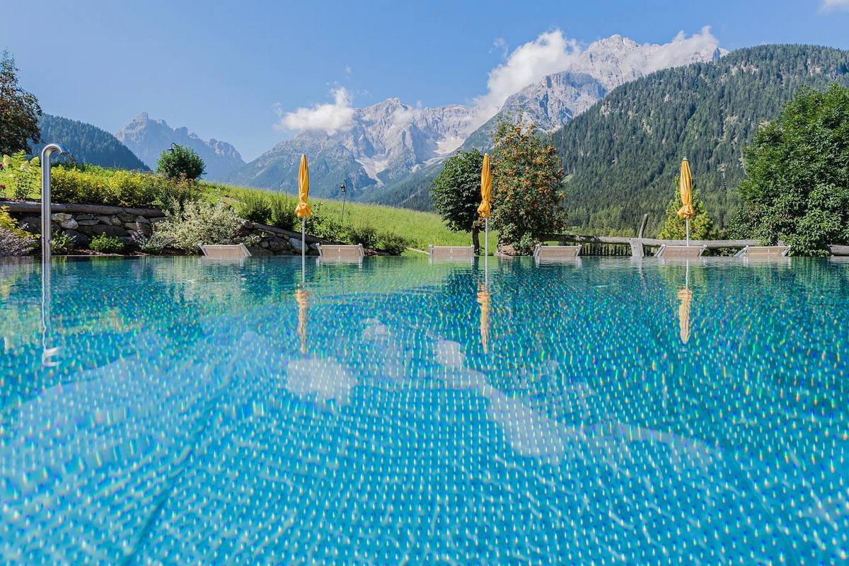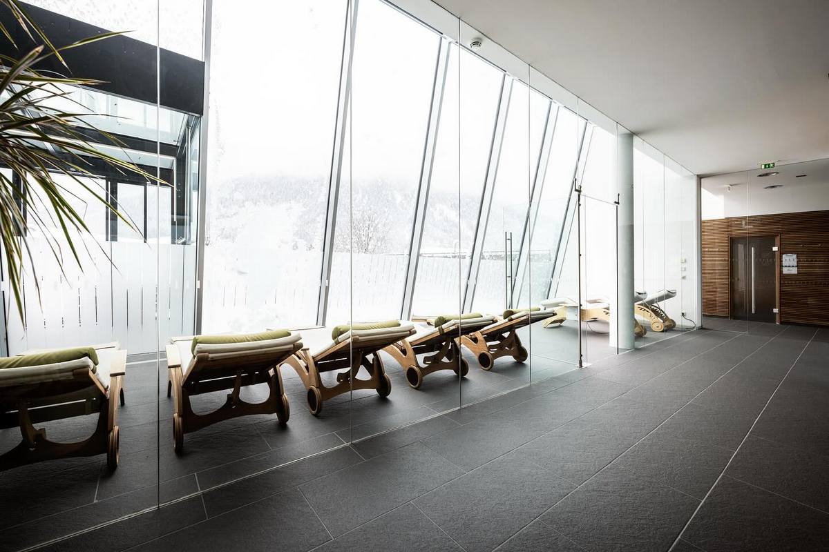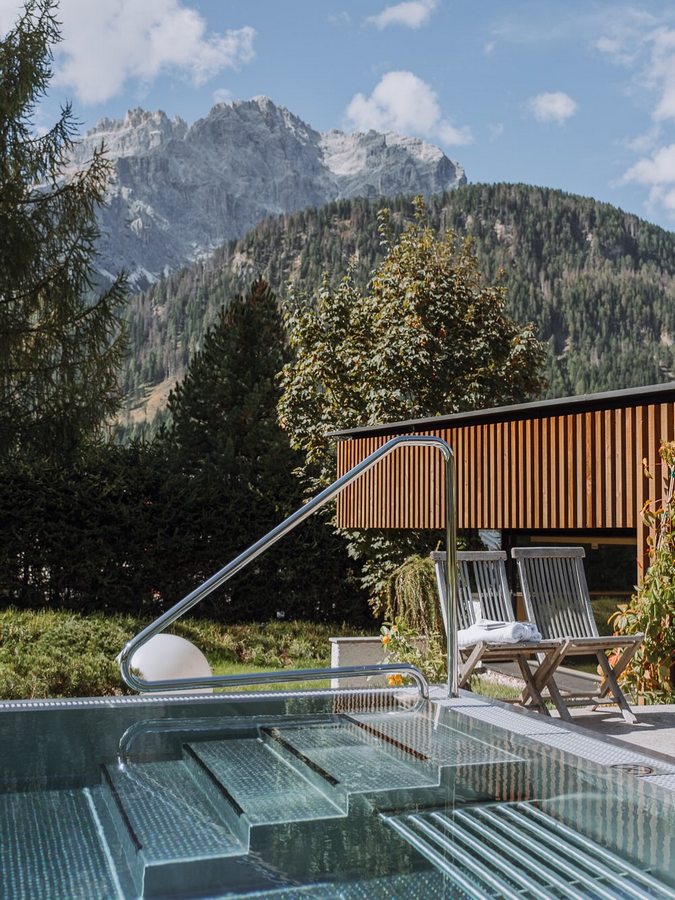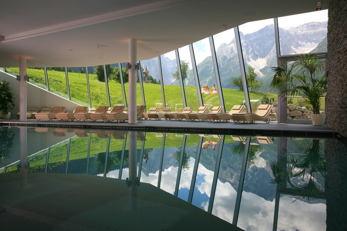 - Kryty basen z panoramicznym widokiem na Dolomity