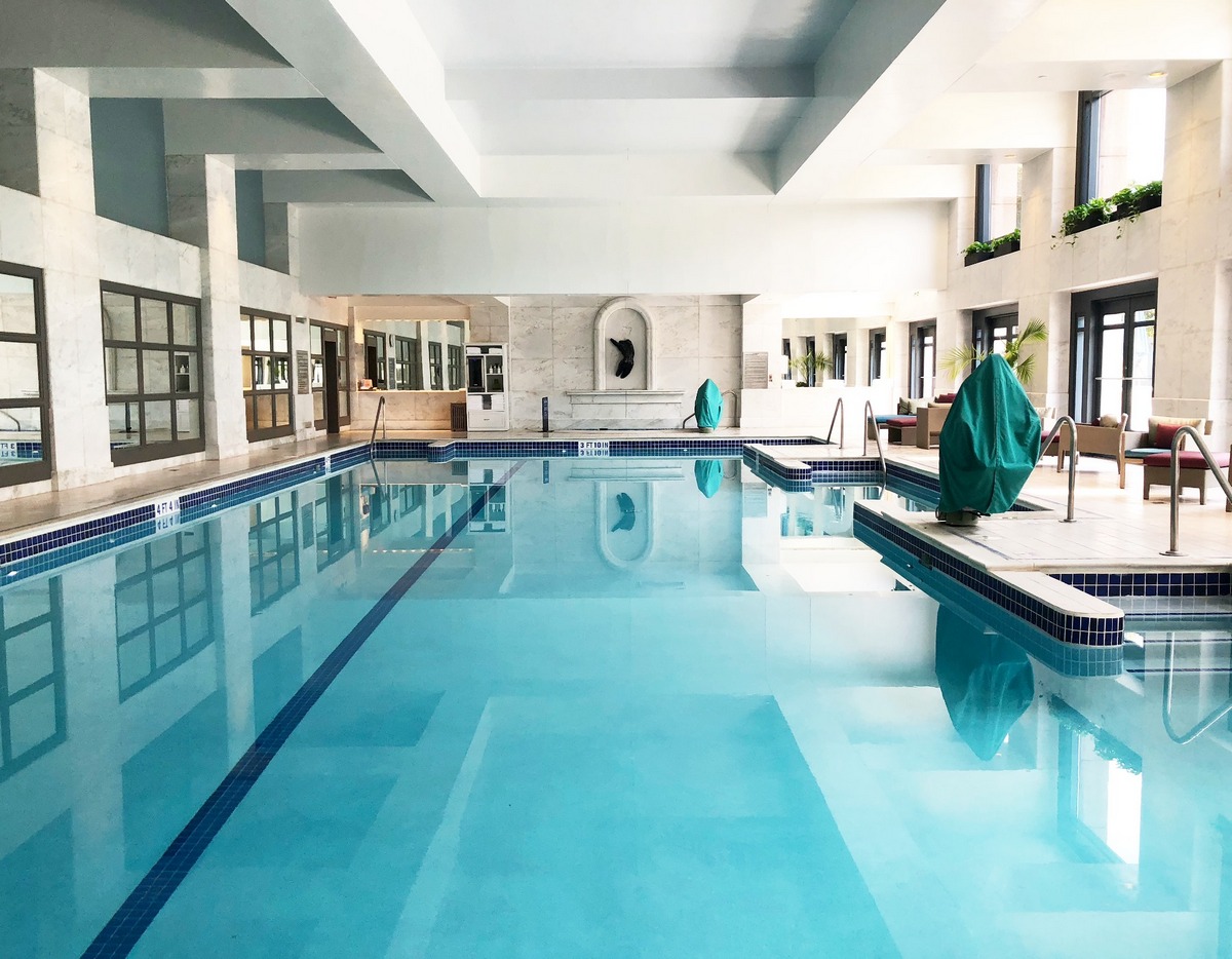 - Kryty basen z leżakami rattanowymi, wybór przekąsek i napojów