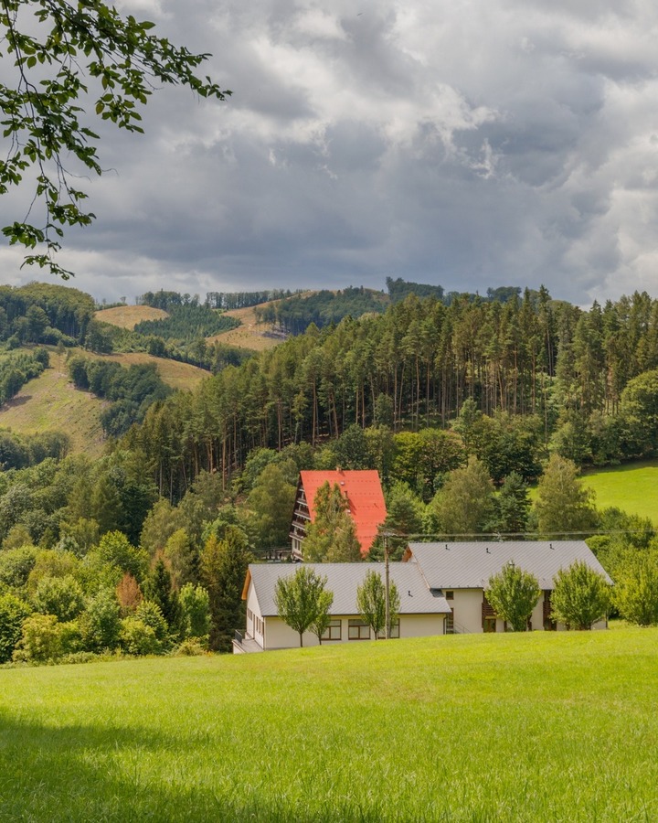 Kompleks składa się z dwóch budynków hotelowych (Hotel Rusava I i Hotel Rusava II) oraz stylowych, klimatyzowanych domków z częścią sypialną (odpowiednich na pobyty rodzinne). Cały teren otoczony jest piękną przyrodą Wzgórz Hostýńskich (czeski Hostýnské vrchy) i należy do gminy Rusava w regionie wołoskim. Miejscowość Bystřice pod Hostýnem oddalona jest o około 10 km, a najbliższe połączenie z autostradą D55 o około 20 km. W bezpośrednim sąsiedztwie ośrodka znajduje się letni basen ze zjeżdżalnią, czynny zazwyczaj od czerwca do września, a także mniejszy stok narciarski. W hotelu znajduje się również restauracja z kominkiem, taras letni, bar w lobby, kryty basen ze strefą wellness, pokój zabaw dla dzieci, kręgielnia lub plac zabaw na świeżym powietrzu (korty tenisowe, koszykówka, siatkówka, piłka nożna).