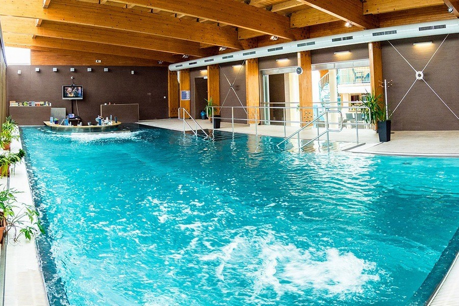 - Kryty basen termalny z minibarem (16×6 m)