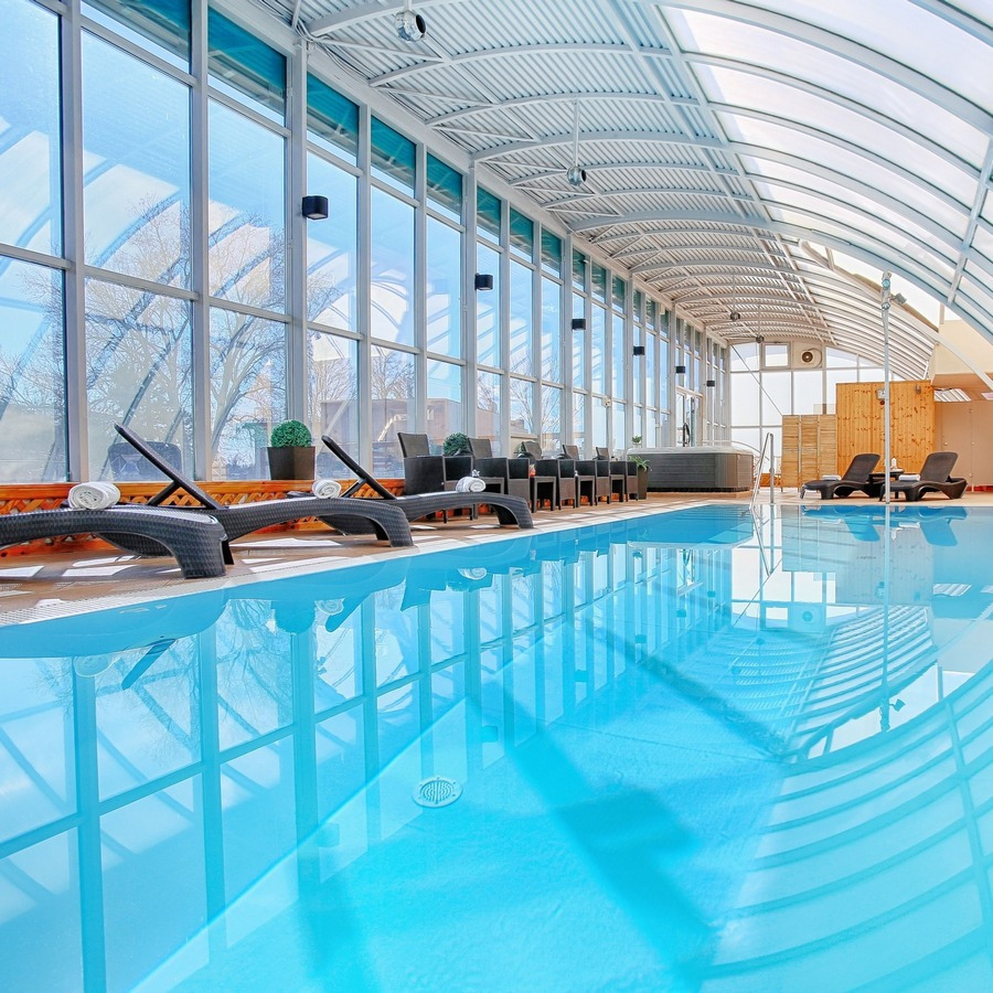 - Basen kryty (5×10 m, temperatura 29 °C)