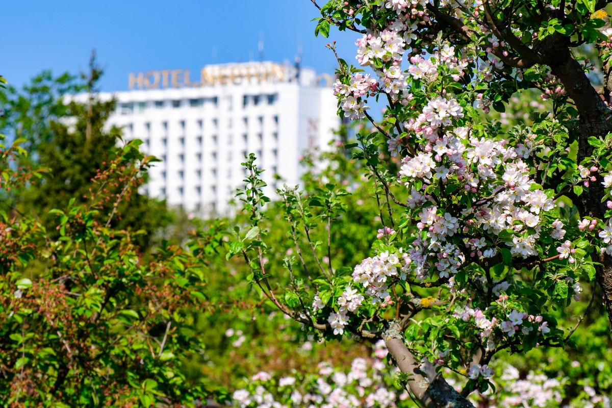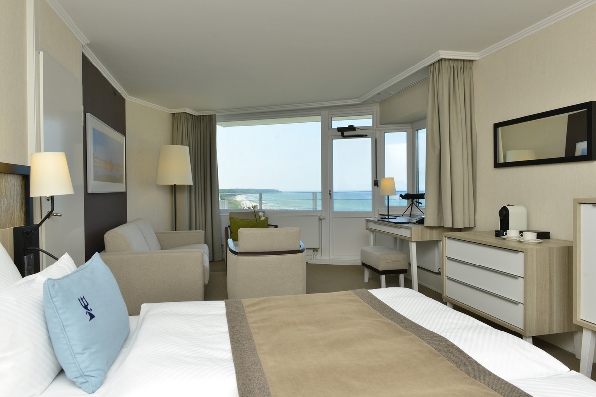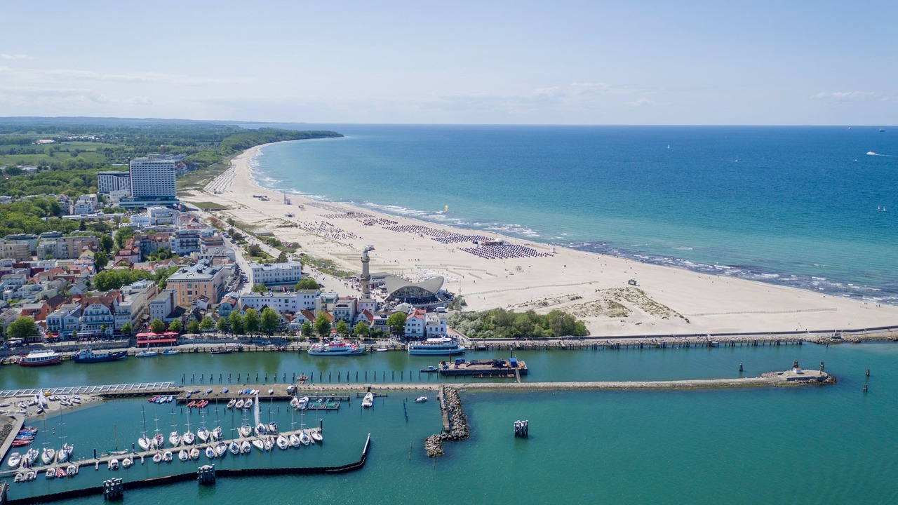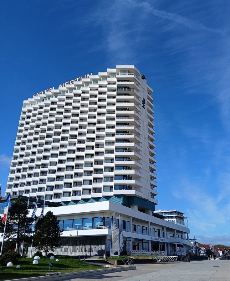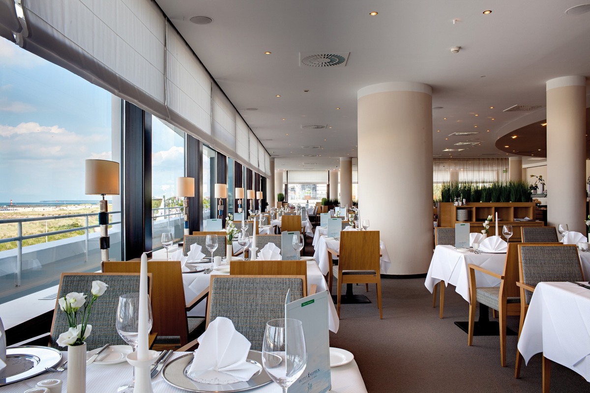 Ośrodek położony jest bezpośrednio przy plaży w dzielnicy Warnemünde – części miasta portowego Rostock. Promenada nadmorska znajduje się zaledwie kilka minut spacerem od budynku, a dzięki dostępności komunikacji miejskiej można odwiedzić muzeum stoczniowe, zabytkową bramę miejską (Kröpeliner Tor), zoo, port lub latarnię morską (Warnemünde Lighthouse). Hotel oferuje różnego rodzaju luksusowo urządzone pokoje, z których część ma widok na morze. W jadalni Goście mogą korzystać z restauracji, grilla, winiarni lub baru z kawiarnią z panoramicznym widokiem. Hotel dysponuje również krytym basenem i strefą wellness (o łącznej powierzchni 2400 m²).