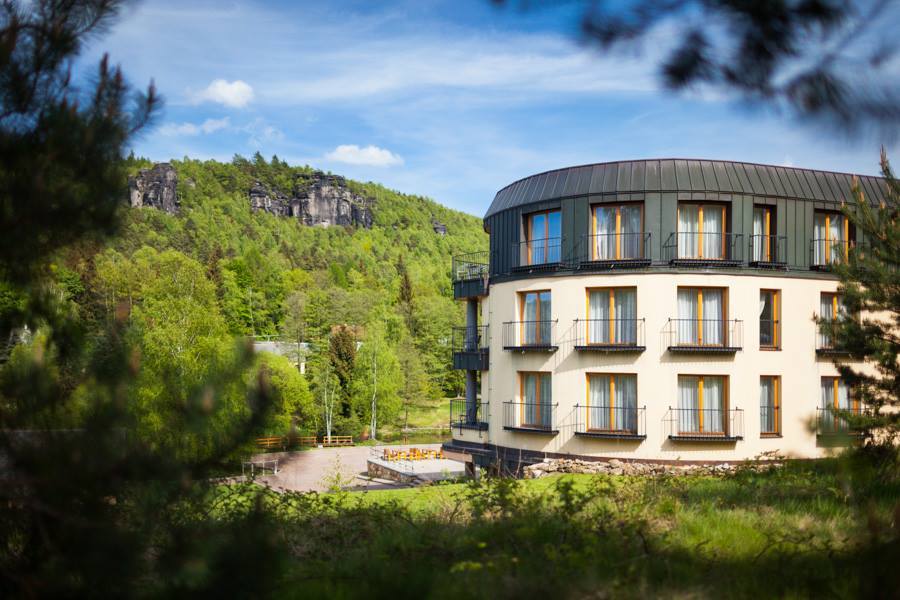 Hotel położony jest w regionie Czeskiej Szwajcarii, pośród skał i innych naturalnych perełek. Z nowocześnie wyposażonych pokoi roztacza się widok na Ostrovské skály, które płynnie przechodzą w piaskowcowe miasto skalne Tiské stěny. W hotelu znajduje się restauracja, z której roztacza się wspaniały widok na okoliczne skały. Szczególną uwagę poświęcono bogatemu wyborowi win (z Moraw i innych popularnych regionów winiarskich). Hotel dysponuje własnym centrum odnowy biologicznej z krytym basenem, z którego Goście mają bezpłatny dostęp przez cały pobyt.