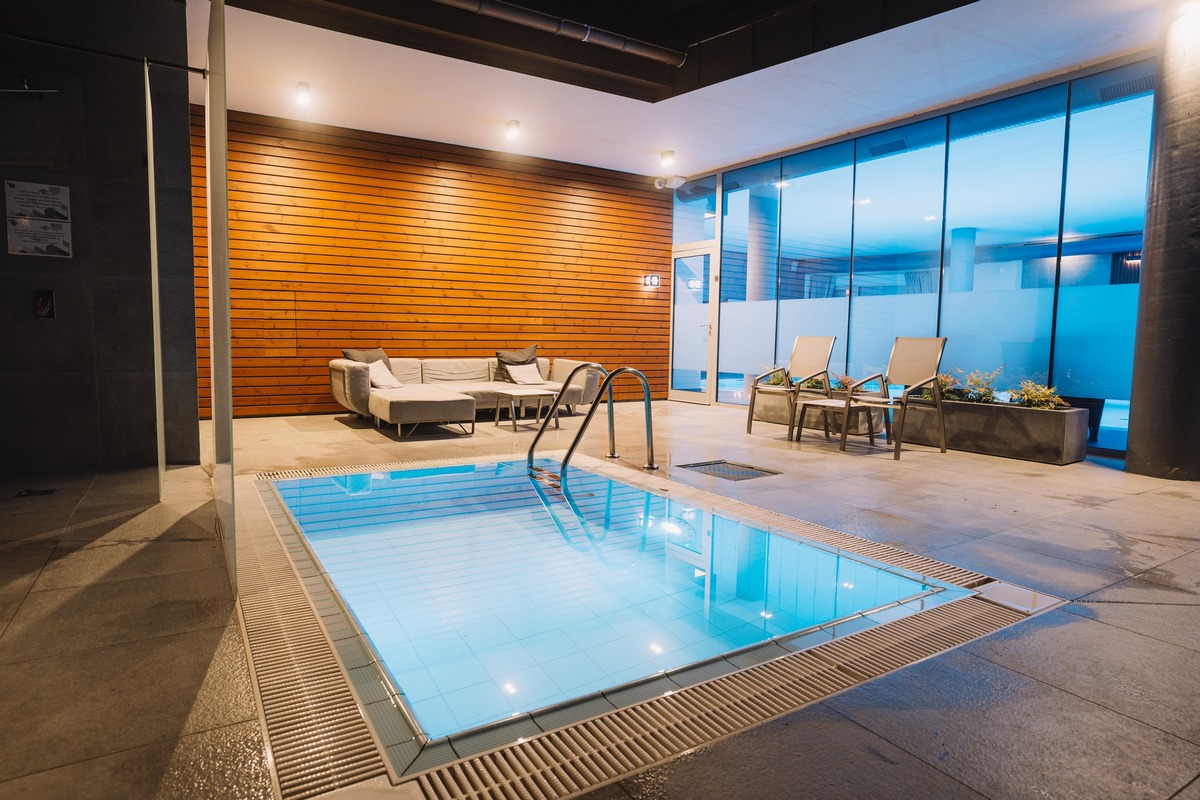 • Kryty basen panoramiczny (6 × 11 m, temperatura 27°C)