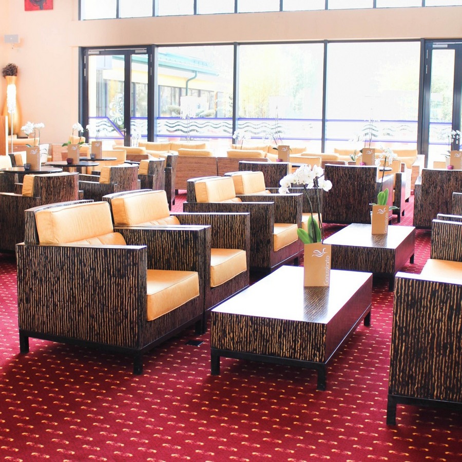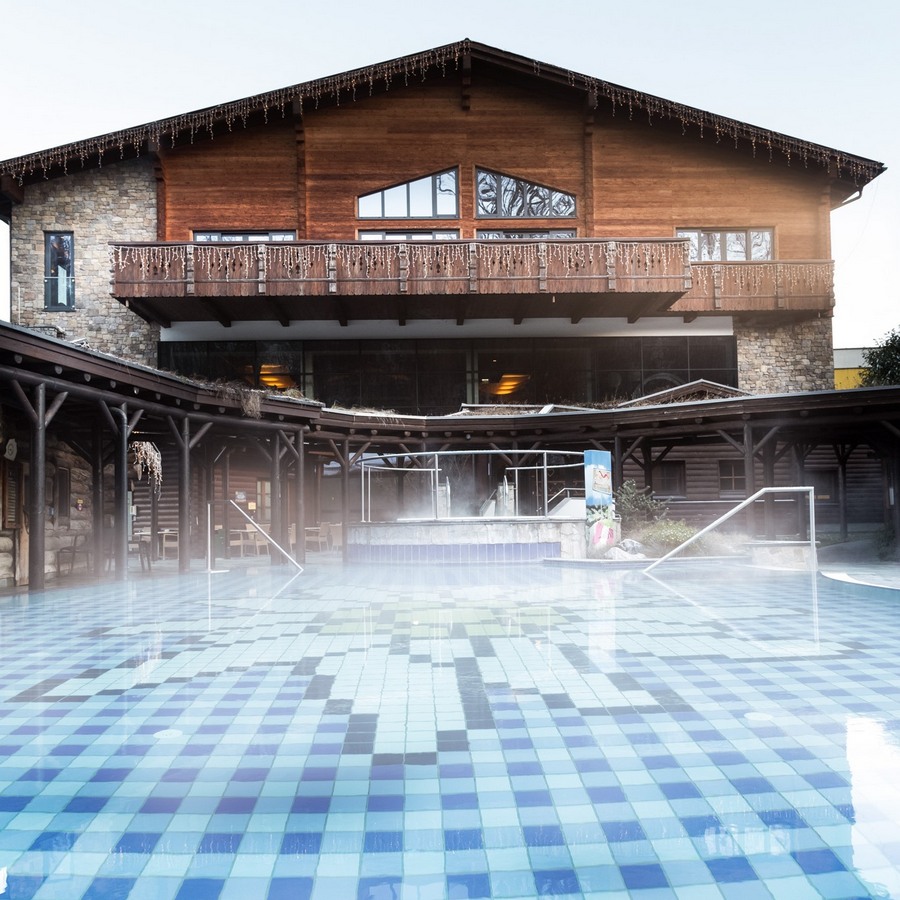 - Panoramiczny basen zewnętrzny z torem do masażu wodnego (temperatura 34°C)