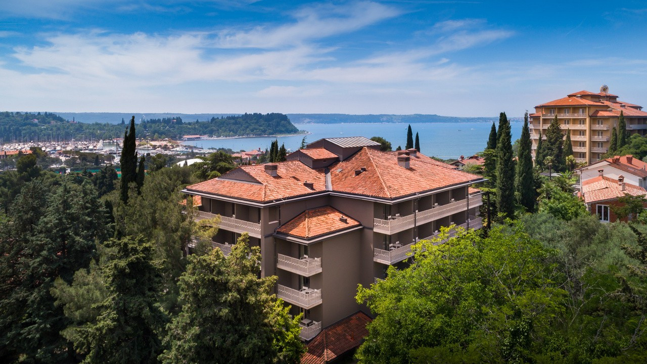 Kompleks położony jest na wzniesieniu, na wzgórzu Św. Lovrenc, a tym samym oferuje niesamowity widok na nowoczesne, tętniące życiem miasto Portorož, a także port o tej samej nazwie. Hotel oferuje zaplecze umożliwiające szeroką gamę zajęć, zarówno wodnych, jak i pozawodnych. W ofercie nowo otwarte centrum wellness, basen kryty lub basen zewnętrzny na tarasie z widokiem na wybrzeże. Goście mogą również korzystać ze wszystkich atrakcji miasta Portorož, łącznie z plażą miejską, która znajduje się około 600 m od hotelu.