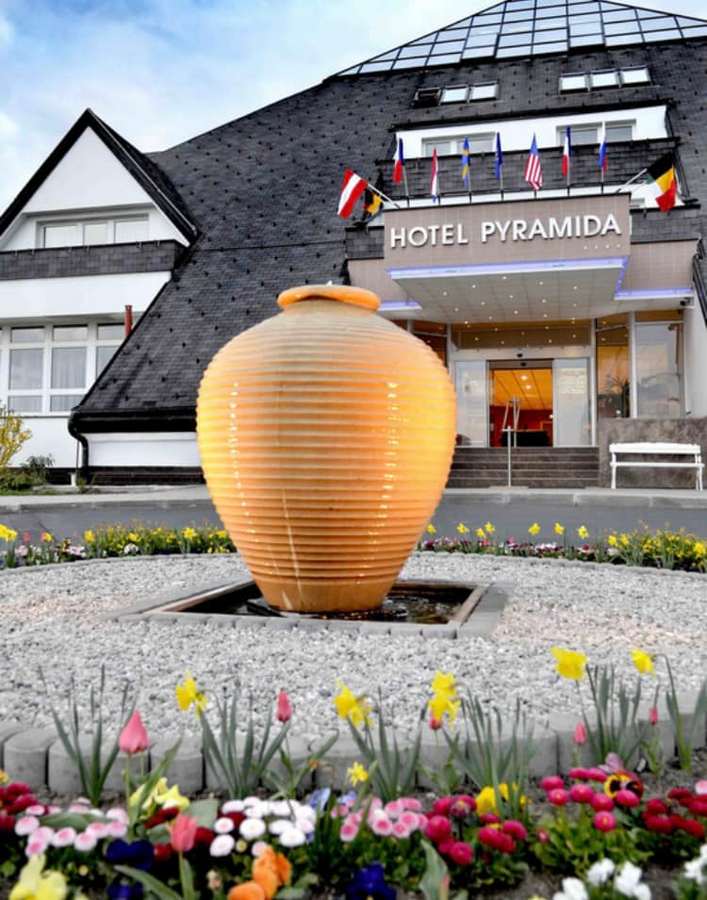 Hotel uzdrowiskowy Pyramida położony jest w pobliżu centrum Františkovych Łaźni i charakteryzuje się naprawdę wyjątkowym designem. W przeszklonym czubku hotelu znajduje się panoramiczna kawiarnia na dachu. Oprócz krytego basenu i sauny hotel oferuje również szeroką gamę klasycznych i nowoczesnych zabiegów wellness.