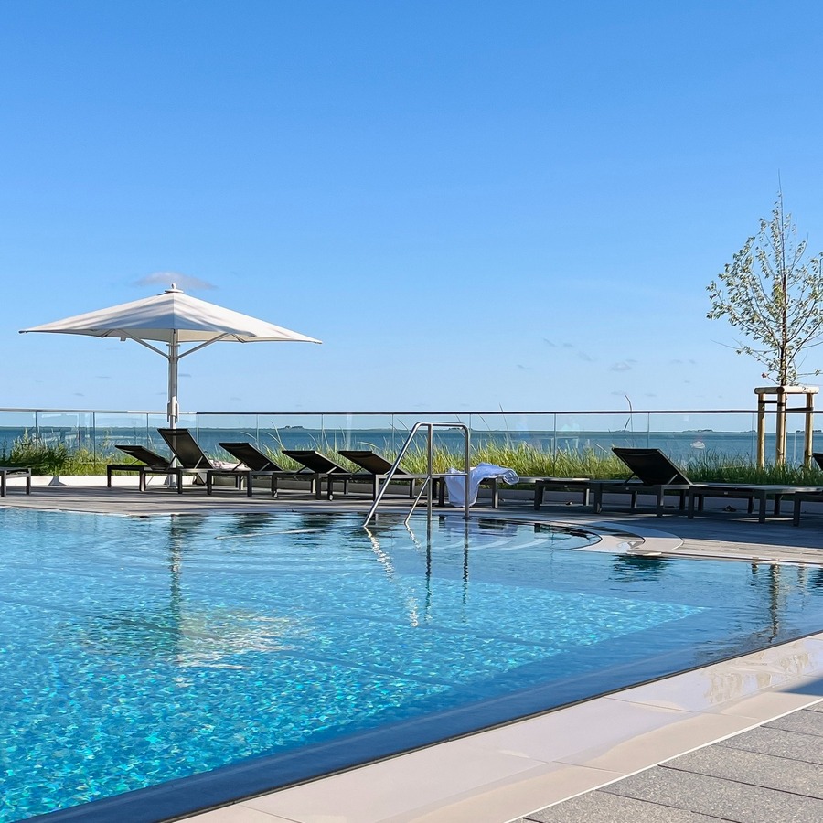Hotel położony jest w Wyk na wyspie Föhr, bezpośrednio przy białej piaszczystej plaży. Wyspa jest drugą co do wielkości niemiecką wyspą na Morzu Północnym i charakteryzuje się kilometrami białych piaszczystych plaż, zieloną przyrodą i przyjemnym klimatem morskim pod wpływem ciepłego Zatokowego Prądu. Hotel oferuje przestronne pokoje w stylu nordyckim (niektóre z widokiem na morze), restaurację z tarasami (kuchnia nordycka i międzynarodowa), bar hygge, cukiernię, wypożyczalnię rowerów i rowerów elektrycznych oraz strefę wellness o powierzchni 2000 m² z krytymi i odkrytymi basenami.