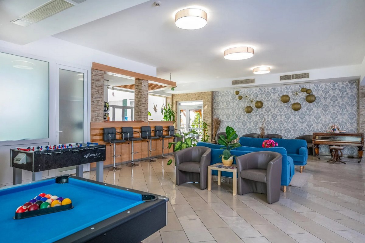 Obiekt położony jest w spokojnej części uzdrowiska Zalakaros, a jednocześnie zaledwie kilka minut spacerem od centrum i Karos Korzó. Oprócz własnej strefy wellness (ok. 600 m²) hotel świadczy usługi w postaci specjalnych masaży i wyśmienitej gastronomii. Goście mogą także korzystać ze stołu bilardowego, piłkarzyków, pokoju zabaw dla dzieci, szachów i minibiblioteki. Ponadto w pobliżu hotelu znajdują się legendarne uzdrowiska, które oferują kryte i odkryte baseny termalne, baseny wrażeń, a szczególnie w sezonie letnim dostępna jest cała gama atrakcji, w tym zjeżdżalnie „kamikadze”.