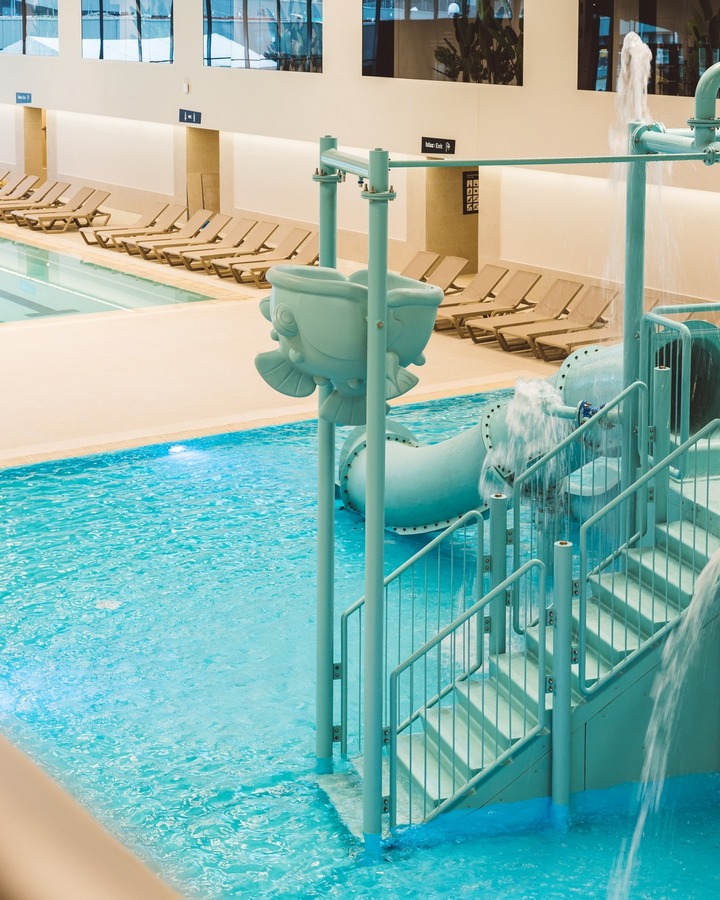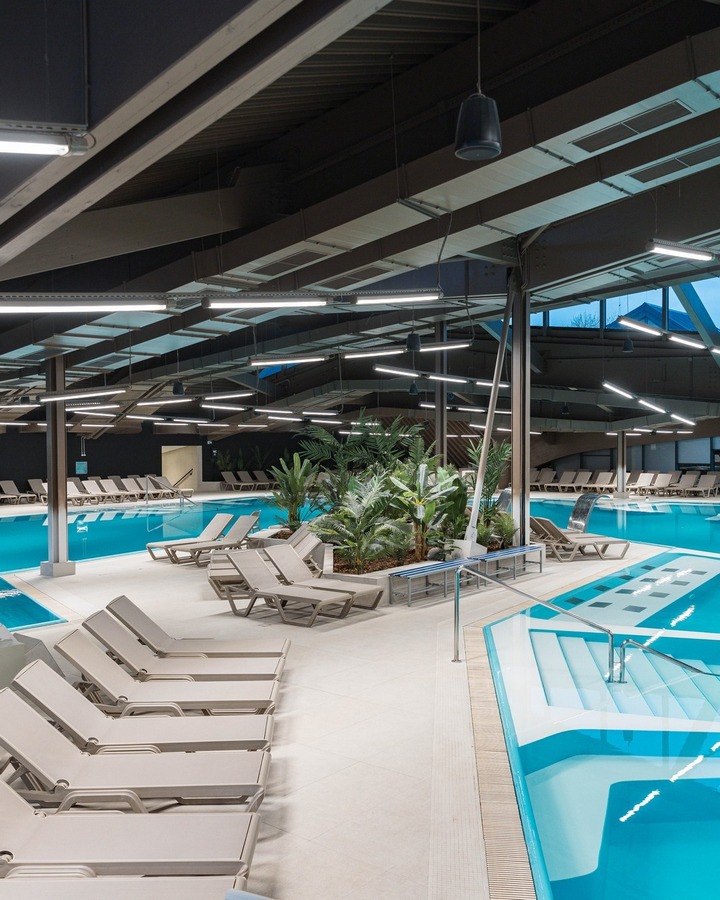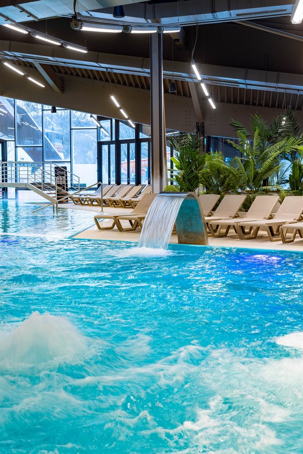 - Wodna oaza (baseny kryte i odkryte, wodospady, atrakcje, strefy relaksu)
