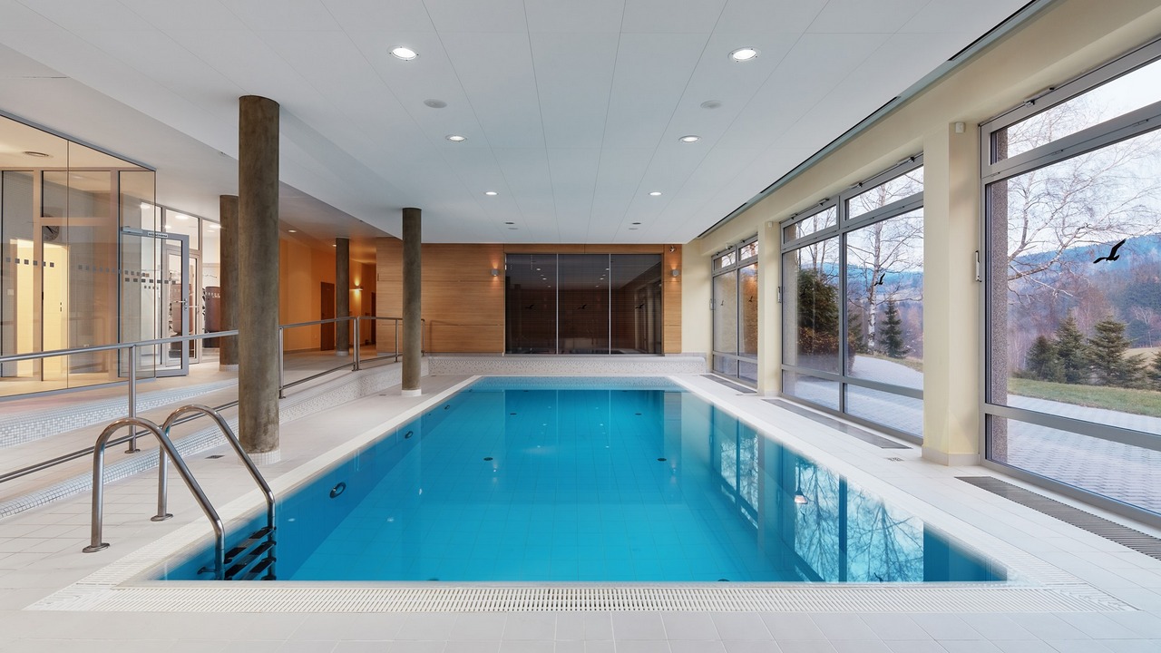 - Kryty basen z widokiem na otaczającą przyrodę