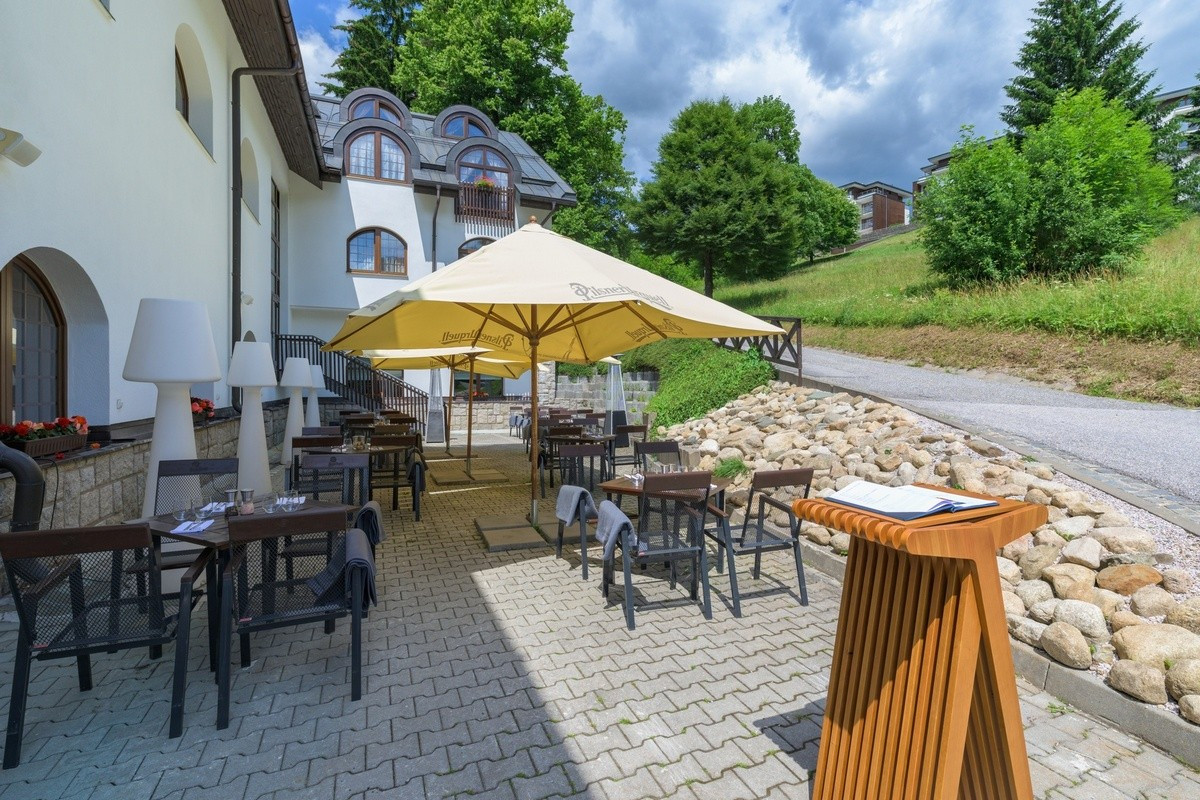 Hotel z długą tradycją ( sięgającą 1894 roku) położony jest w centrum Szpindlerowego Młyna i oferuje wspaniały widok na Medvedín i Św. Piotra. Kompleks jest odpowiednim miejscem na aktywny wypoczynek. W pobliżu znajdują się szlaki turystyczne i rowerowe, kolejki linowe, boiska sportowe i atrakcje. Sam hotel oferuje pokój zabaw dla dzieci, 4 tory do gry w kręgle, bilard i przechowalnię rowerów. Na miejscu znajduje się także komfortowe, w pełni wyposażone centrum odnowy biologicznej.